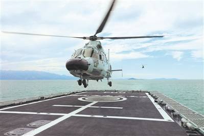 日前,海军某支队组织海上训练。图为舰机协同训练。本报特约通讯员 王光杰 摄
