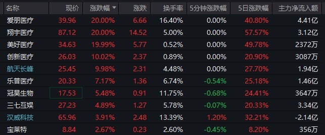 热点方面,脑机接口概念继续大涨,多只个股涨停。其中,爱朋医疗、翔宇医疗连续两日20%涨停,美好医疗19.99%涨停、创新医疗10.02%涨停。